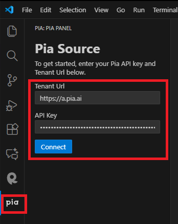 Connecting your Pia Source VSCode Extension with your Pia tenant