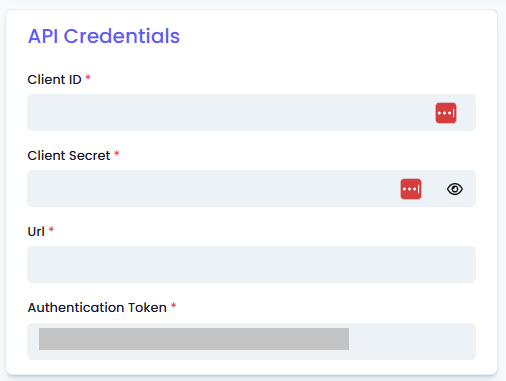 - You will also see four sections with multiple fields that need to be configured for Halo. In the API Credentials section, fill out the following fields: