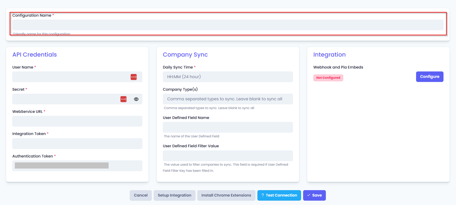- Company Type(s) (optional): This field is used to filter the companies that are synced from ConnectWise into Pia