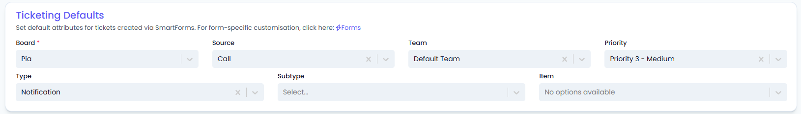 This section allows you to set ticketing defaults for all the SmartForms. If you would like to configure individual setup for each SmartForm, please refer to this article.