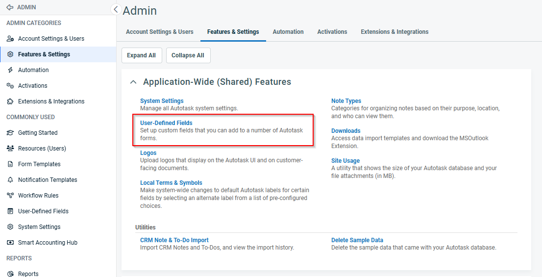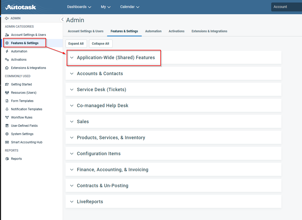 Step 3: Under the "Features & Settings" tab, go to "Application-Wide (Shared) Features"
