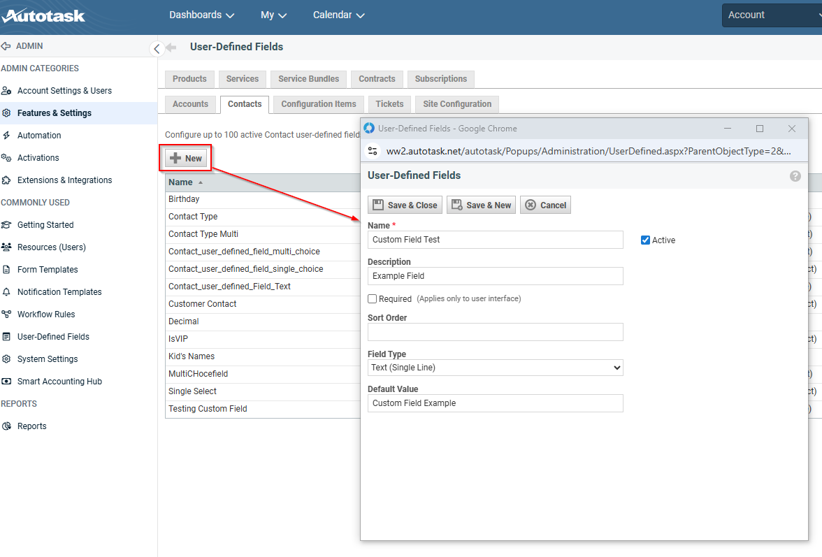 - For AutoTask and Halo users, this field will be divided into two sections β Field Name and Field Value. You will need to create custom fields in your respective ticketing system and setup a value to the field which you can populate in the above two fields.