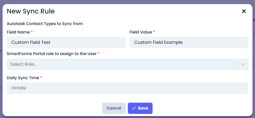 - SmartForms Roles to Sync into: This is the custom role into which the contacts will be synced into