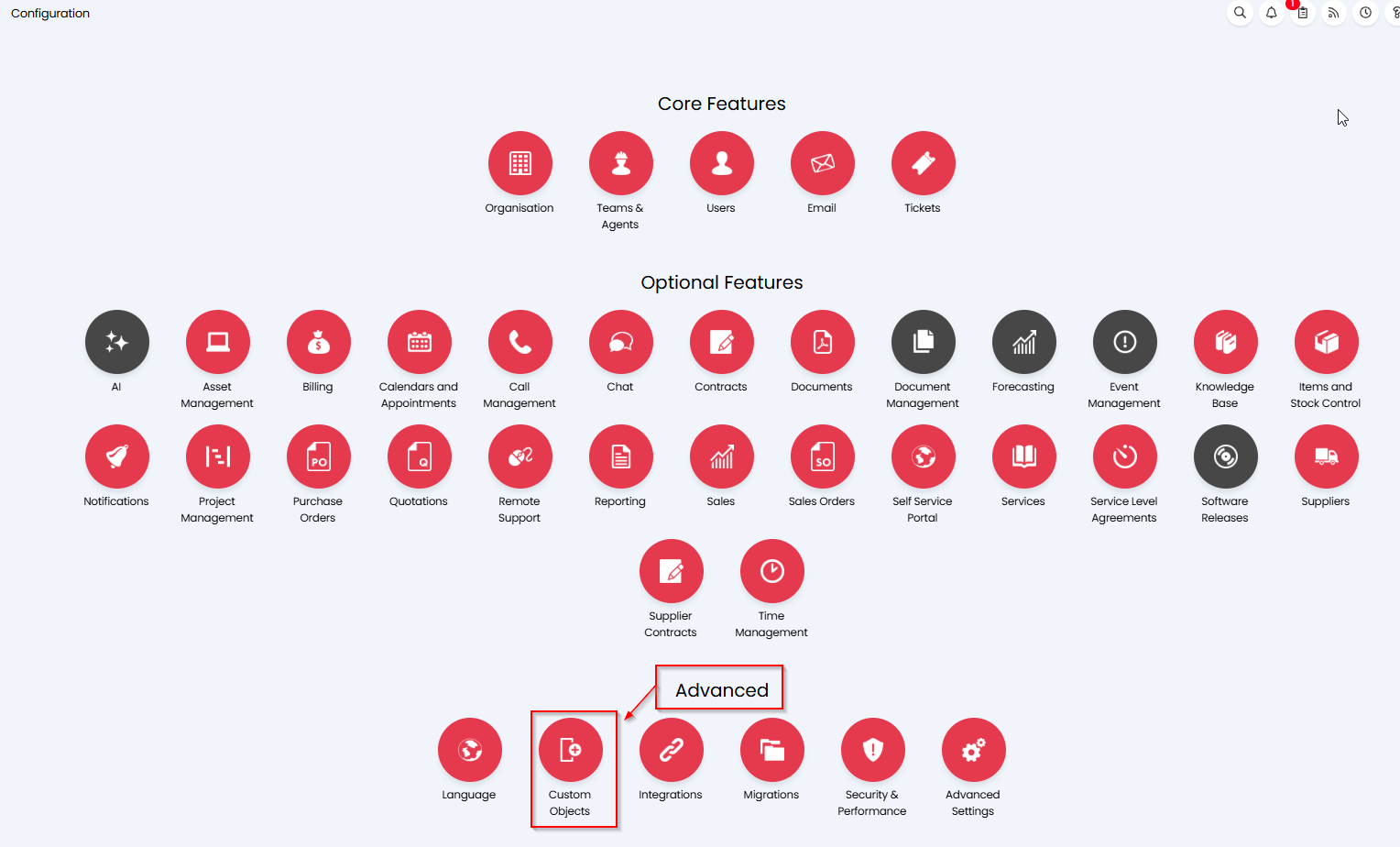 Step 3: Under the Advanced section, click on "Custom Objects"